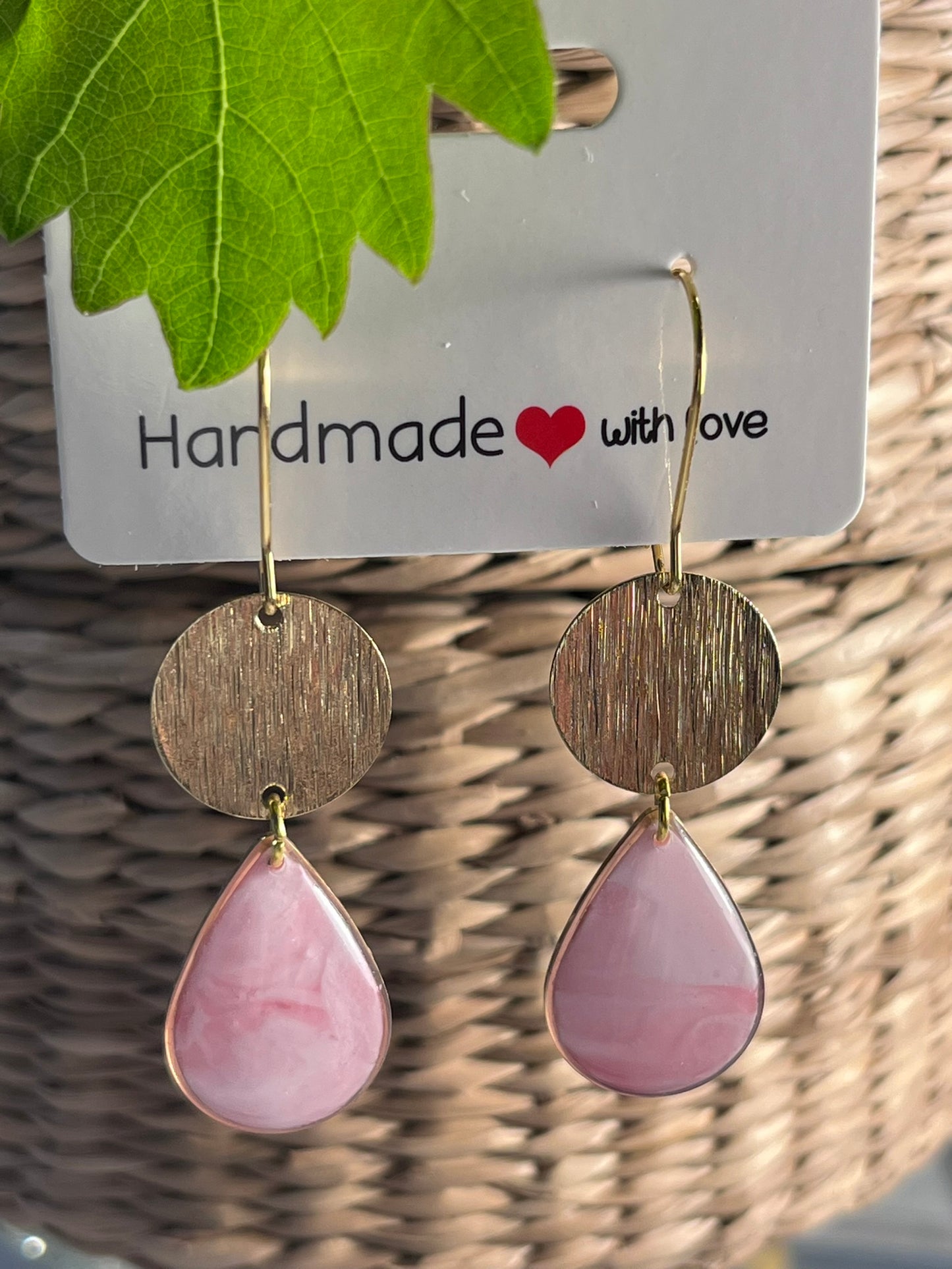 Dråbeformede øreringe i polymer belagt med resin. Med en struktureret cirkel.