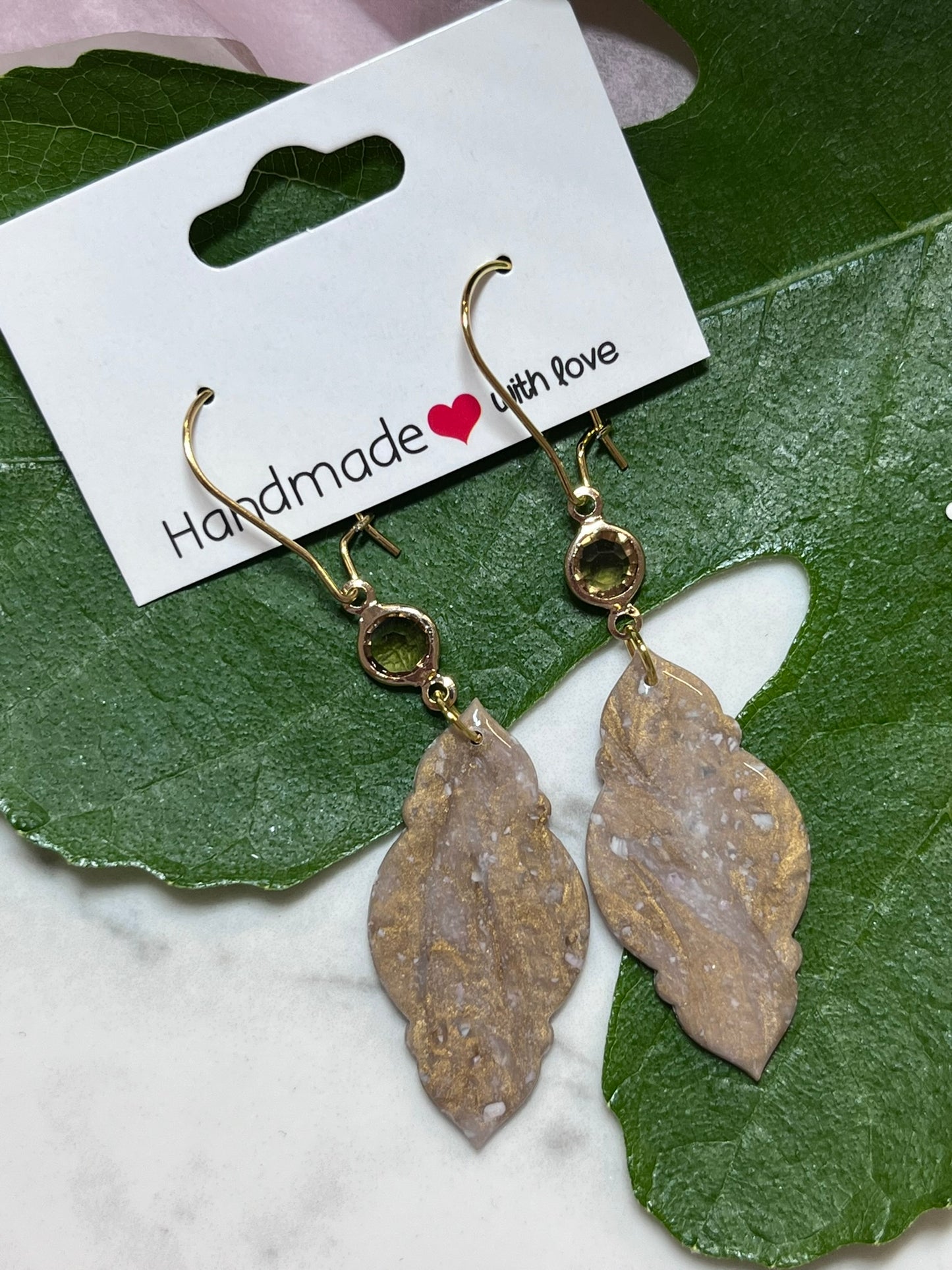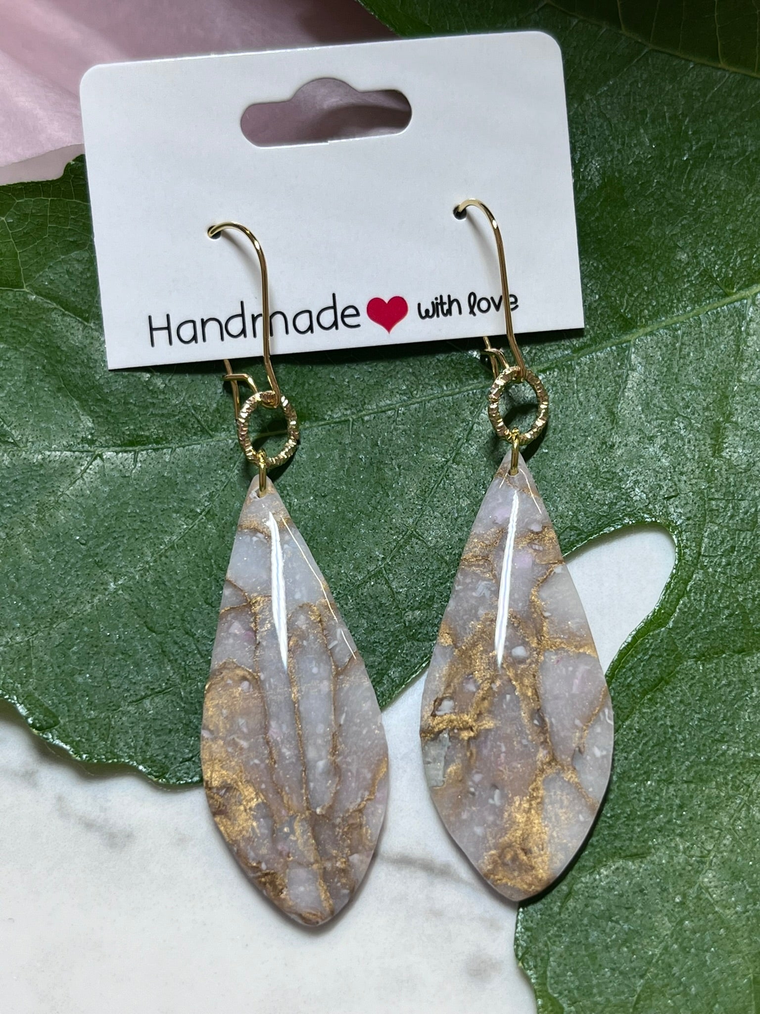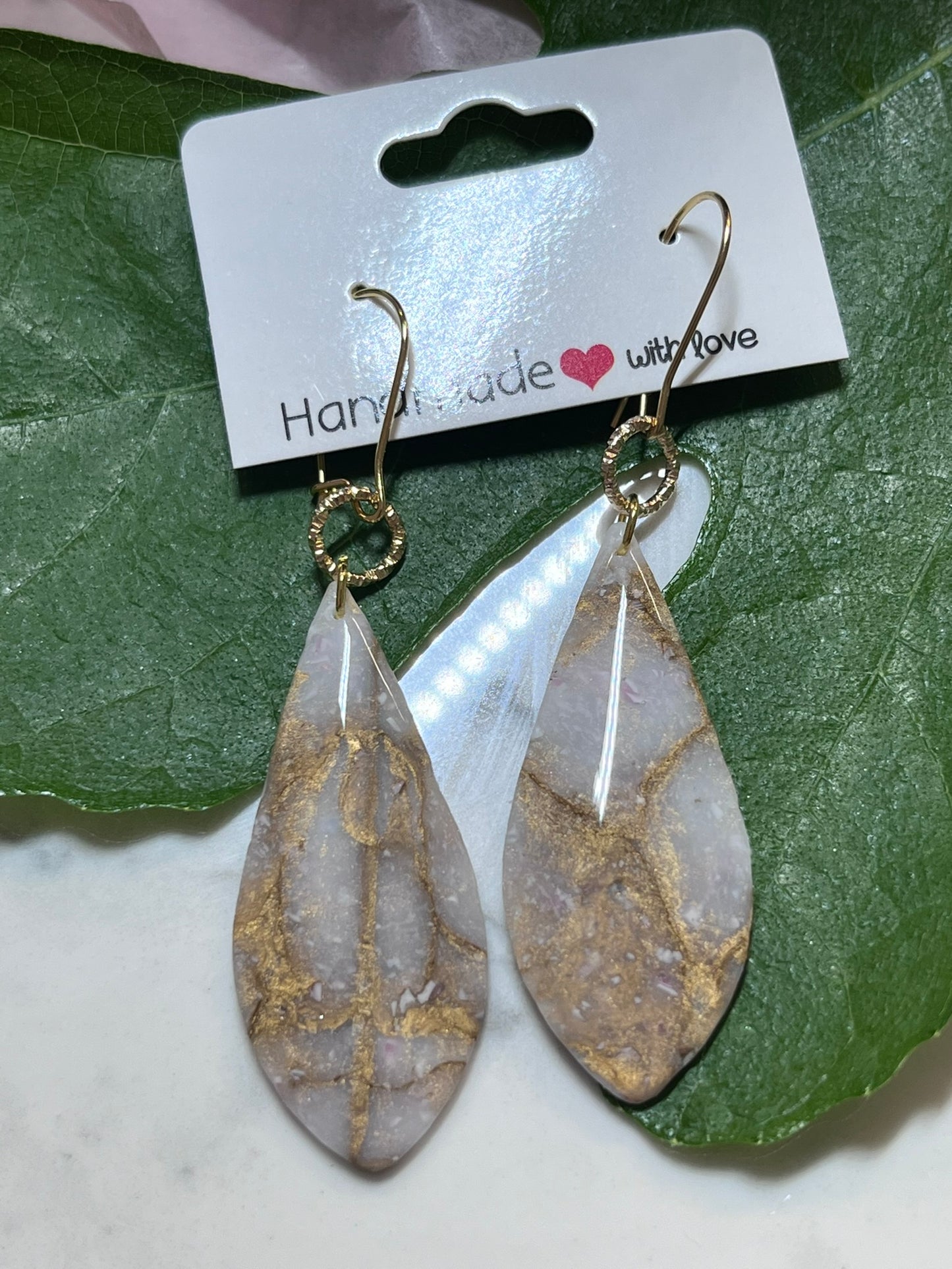 Øreringe i polymer belagt med resin og en lille struktureret ring.