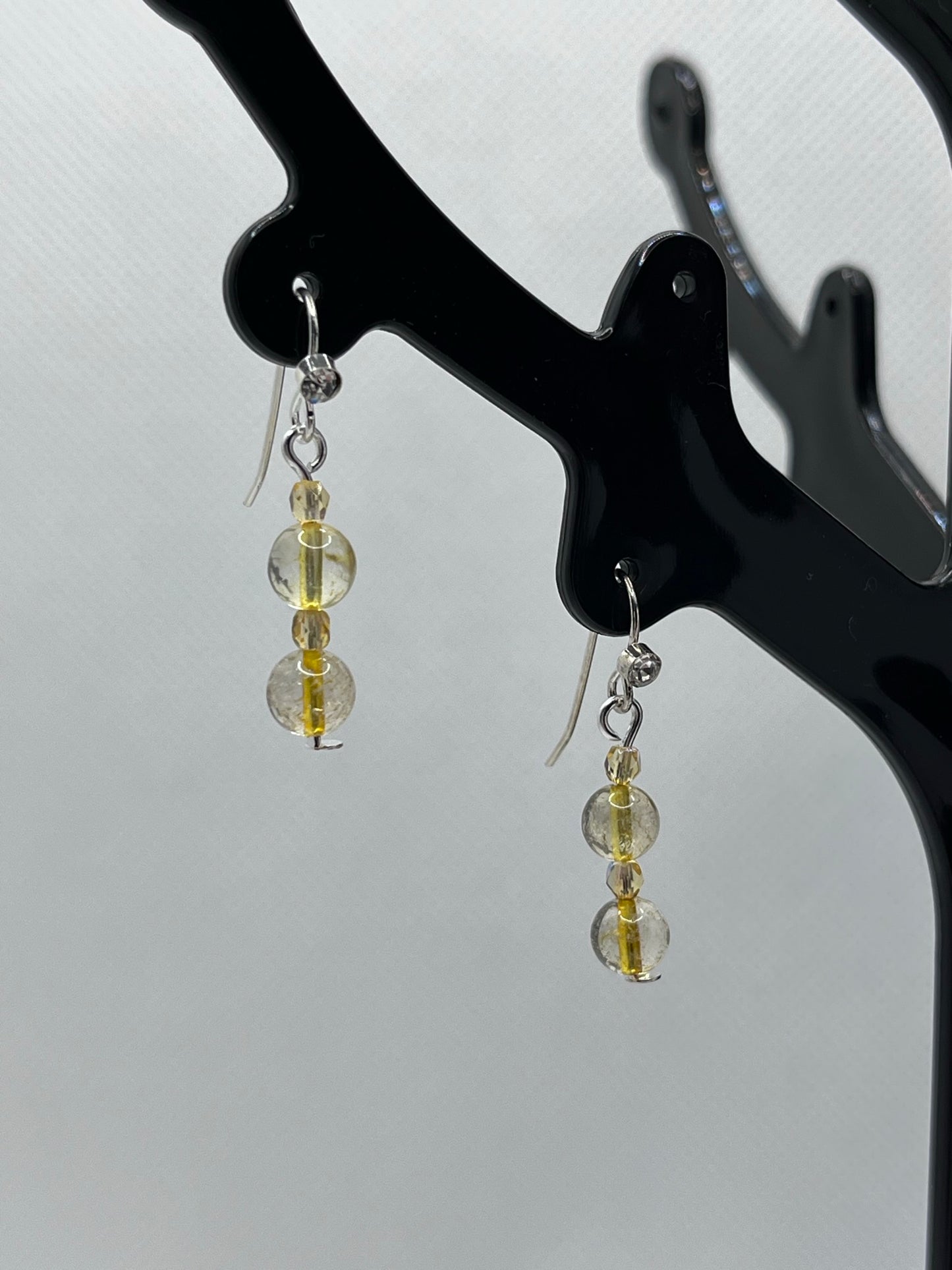 Øreringe i 6 mm rutilated quartz krystal sten og firepolished glasperler.