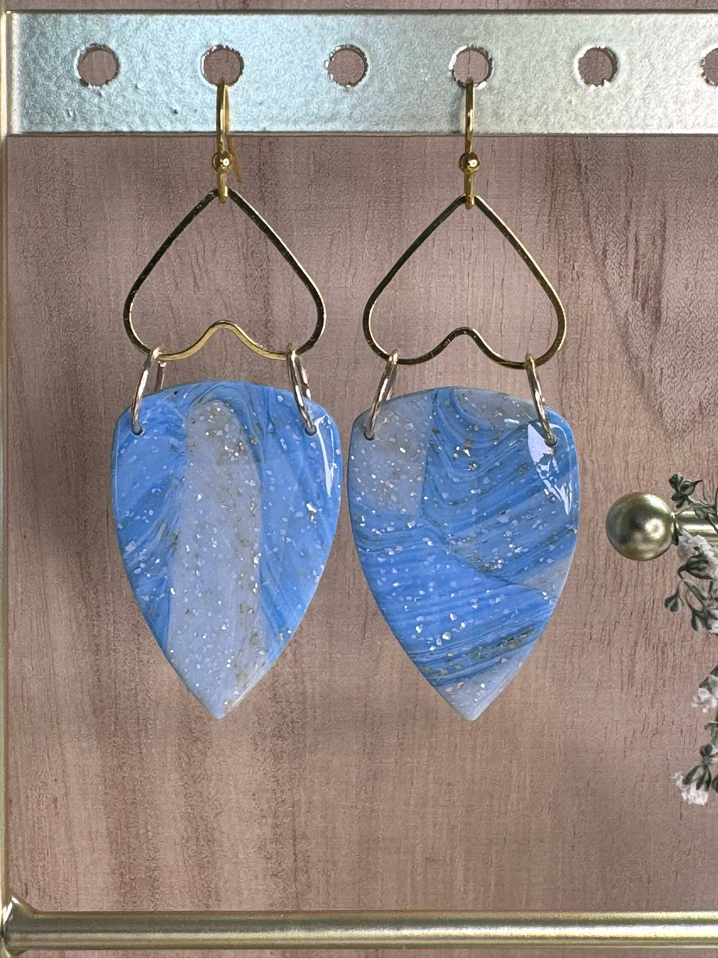 Øreringe i polymer belagt med resin. Lyserød og blå nuancer med glimmer.